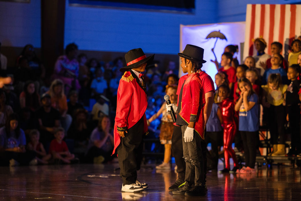 From the first day in Kindergarten to the final fifth-grade performance, students learn to express themselves through rhythm, voice, movement, and instruments.